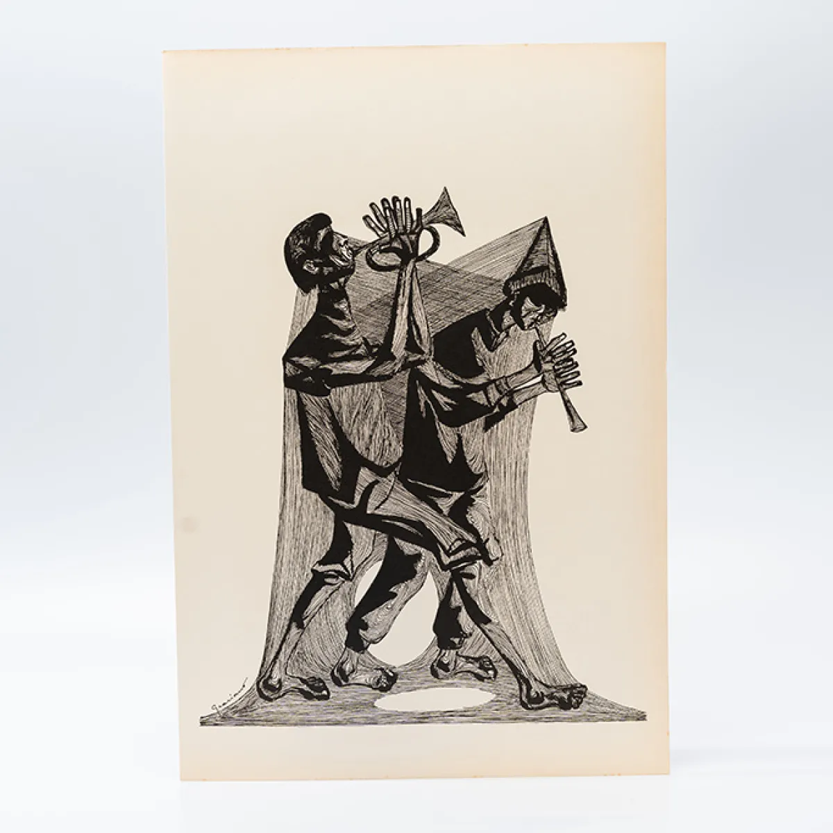 Gravura Clóvis Graciano nº 14 – Dois Músicos de Sopro