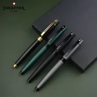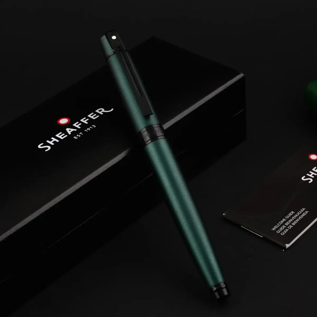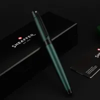 Nesta versão tinteiro, o acabamento em verde fosco (matte green lacquer) combina com os detalhes em preto polido, criando um contraste moderno e refinado. A tampa de encaixe garante fechamento seguro, enquanto a pena de aço inoxidável proporciona escrita suave e contínua. Compatível com cartuchos Sheaffer e com o conversor piston, é uma peça versátil que se adapta tanto a iniciantes quanto a entusiastas da escrita manual.