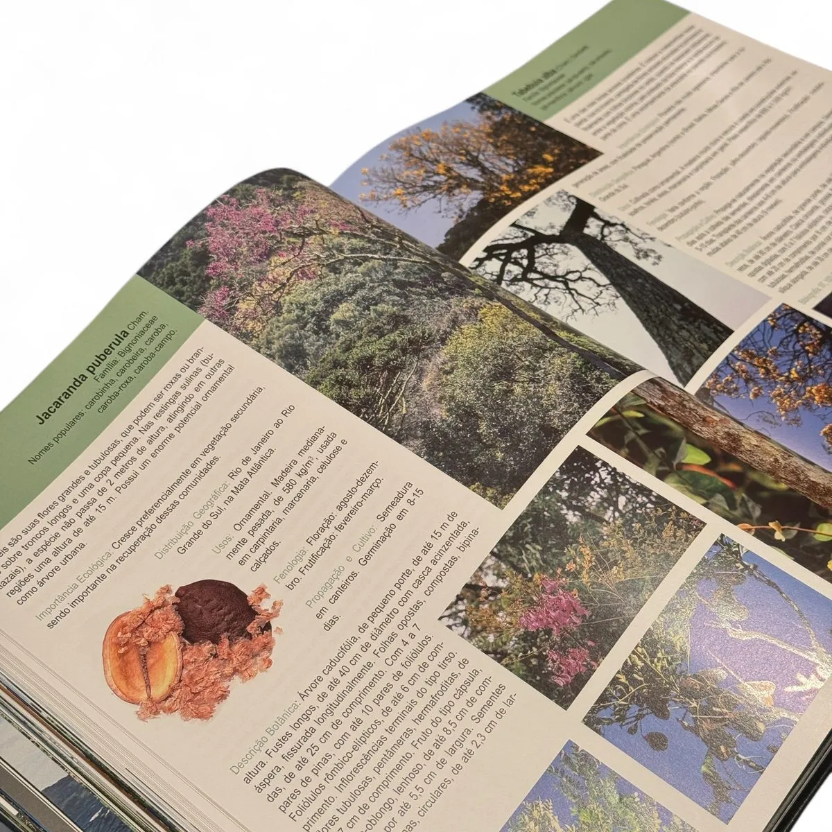 Nosso exemplar é da edição de 2004, em capa dura, formato grande e está em ótimo estado de conservação (capa e lombada íntegras; miolo limpo e firme). Publicado pela Paisagem do Sul, com apoio institucional da Souza Cruz, totaliza cerca de 393 páginas. Peça muito procurada por ser uma das sínteses mais completas e visuais sobre as árvores da Mata Atlântica.