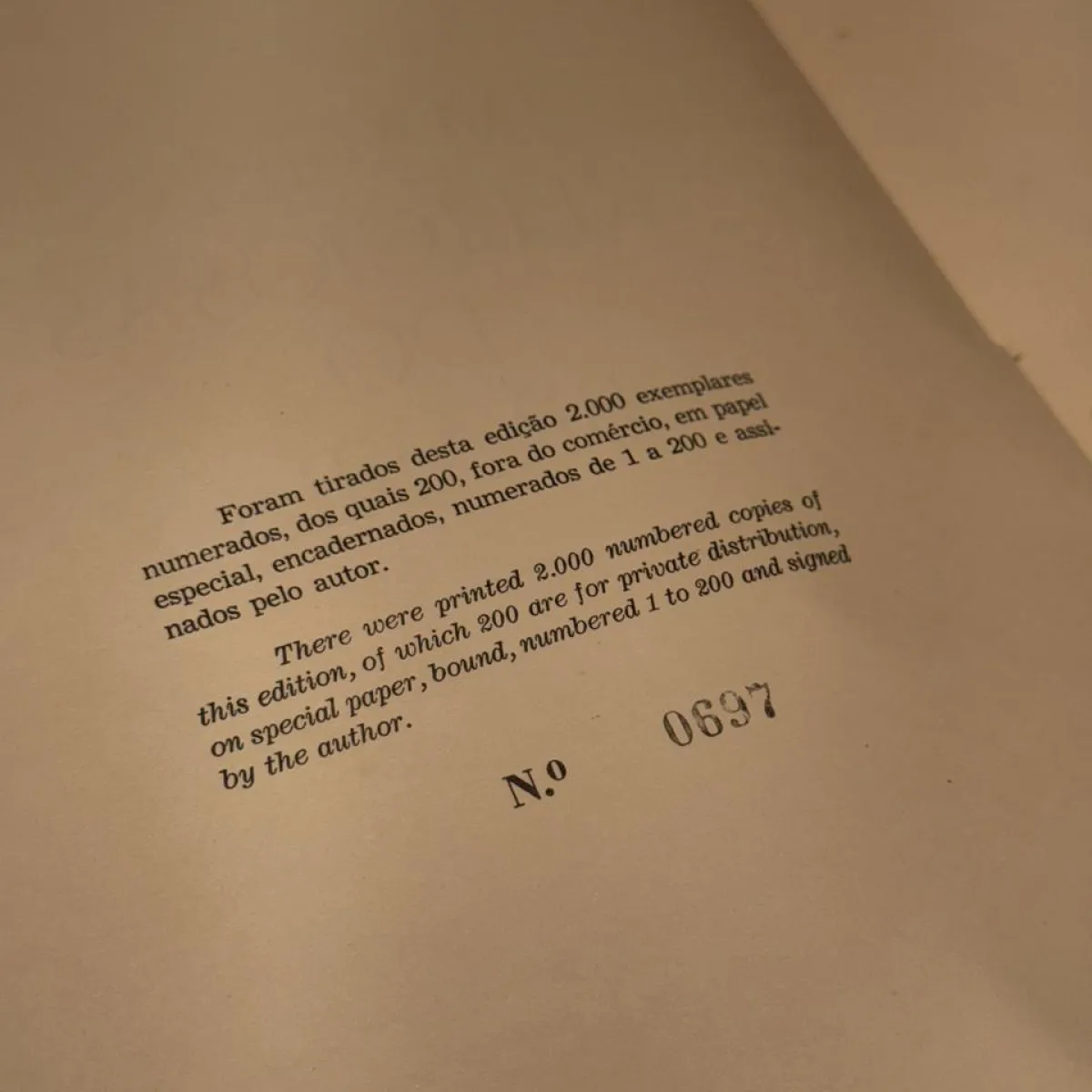• Edição: Numerada (tiragem total 2.000; 200 em papel especial fora de comércio) — Exemplar nº 0697