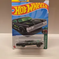 Da sublinha HW Reverse Rake, o Muscle And Blown chega em preto com chamas verdes, para-brisa com faixa verde e blower saindo do capô — look de muscle car exagerado que aparece nas produções Netflix da Hot Wheels. Miniatura 1:64 com postura “reverse rake” (traseira mais baixa), rodas pretas com aro verde e frente retangular de faróis quádruplos. Card ilustrado da série com identificação 3/5 e número de coleção 113/250.