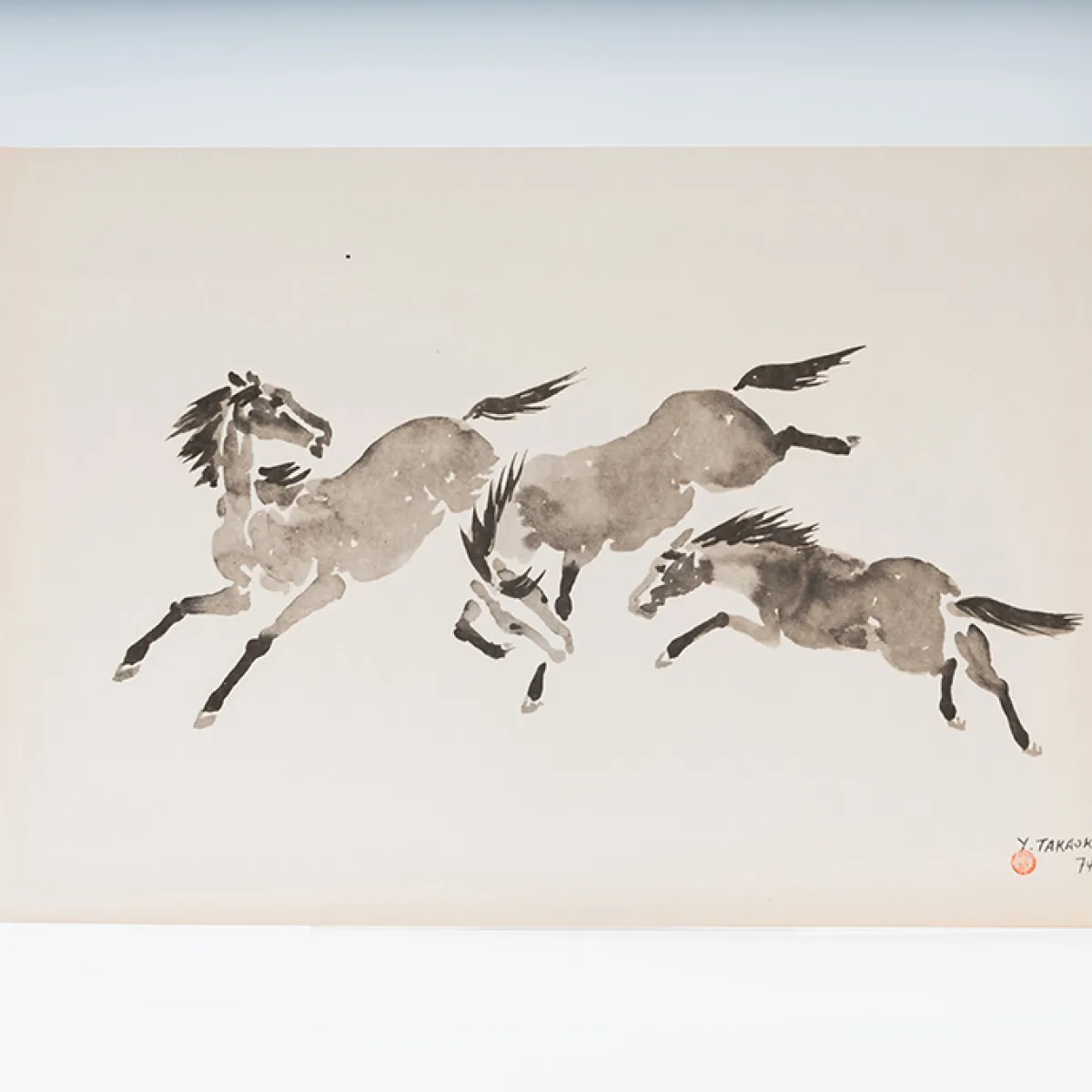 Referência da arte nipo-brasileira, Yoshiya Takaoka (1909–1978) fez do desenho um campo de precisão e economia. Em 1975, a Editora Cultrix reuniu o portfólio “Cavalos – dez desenhos de Y. Takaoka”, com texto de Matias Arrudão, celebrando o mestre do traço contido e do uso expressivo do vazio. São folhas que preservam o gesto direto, a tinta diluída e a observação disciplinada — encontro entre tradição oriental e olhar moderno.